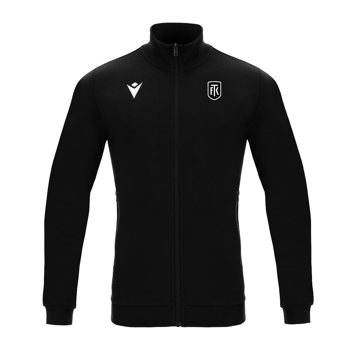 Černá mikina Macron na zip s jednobarevným gumovým logem klubu.