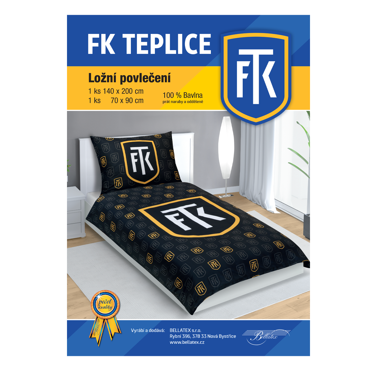 Povlečení FK Teplice - 100% bavlna - černožluté